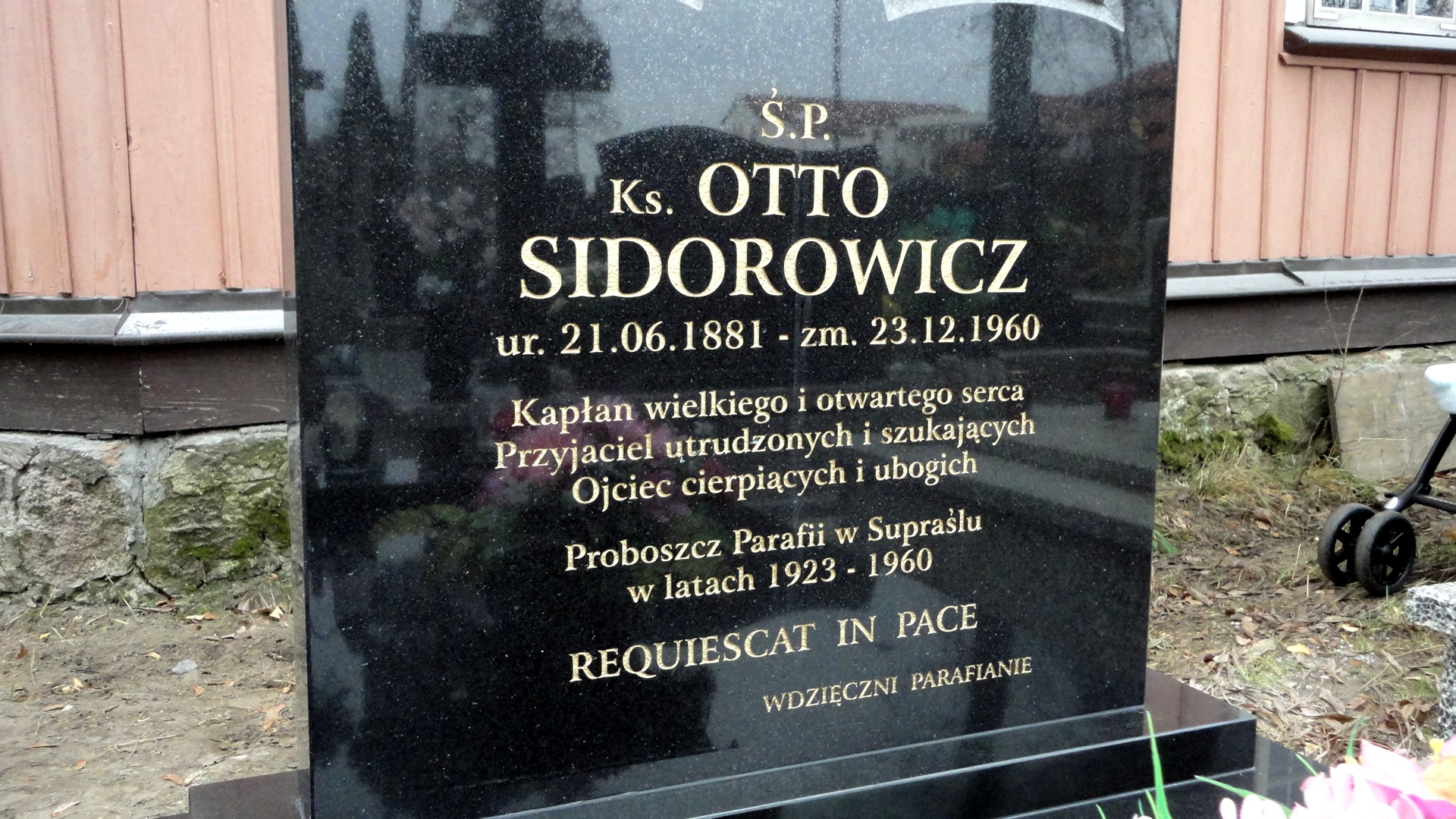 Przed kilkoma dniami zakończone zostały prace związane z postawieniem nowego pomnika na grobie ks. Otto Sidorowicza. Pomnik ten - wykonany z czarnego granitu - ufundowali swemu długoletniemu proboszczowi mieszkańcy Supraśla.